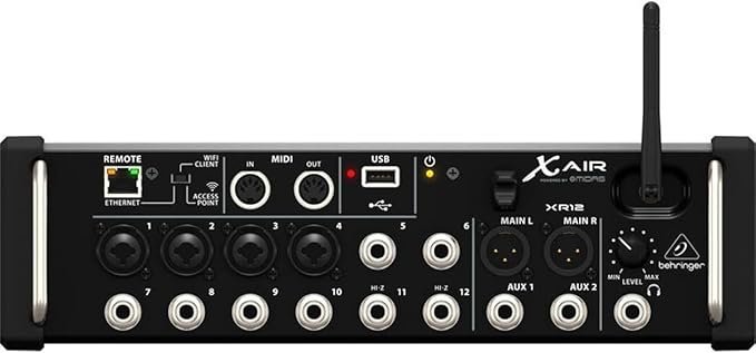 A Behringer X Air XR12 é uma mesa digital compacta controlada via aplicativo (tablet, celular ou notebook). Ela não possui faders físicos.